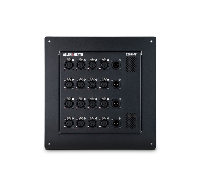 Il DX164-W è un espansore montabile a parete che aggiunge I/O remoti a un mixer dLive, Avantis o SQ o al processore a matrice audio AHM-64.