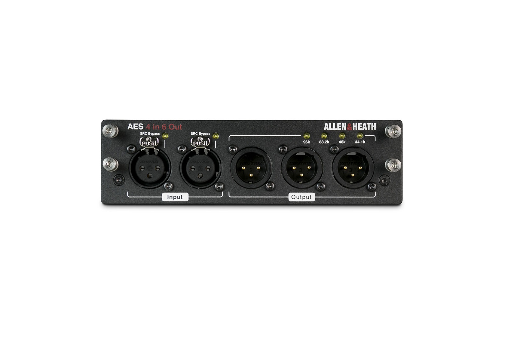 Le schede I/O AES3 forniscono una soluzione conveniente per il patching digitale da un sistema dLive al sistema PA, amplificatori monitor e controller di altoparlanti, o per la combinazione di console. Sono disponibili quattro diverse schede per soddisfare un’ampia varietà di requisiti I/O: 2 ingressi/8 uscite, 4 ingressi/6 uscite, 6 ingressi/4 uscite e 10 uscite. La frequenza di campionamento in uscita delle schede è commutabile tra 96kHz, 88,2kHz, 48kHz e 44,1kHz, mentre gli ingressi forniscono la conversione della frequenza di campionamento da 32kHz a 192kHz. Tutte le schede AES3 possono essere montate su qualsiasi porta I/O in un Allen & Heath dLive o Avantis.