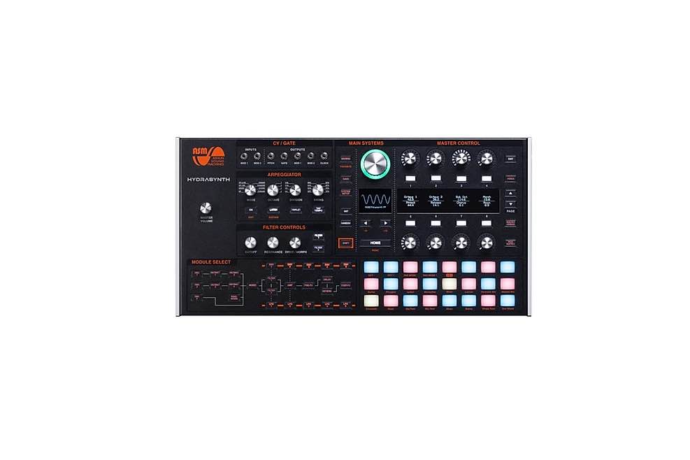 Sintetizzatore wavetable a 8 voci (espandibile collegando un secondo Hydrasynth), con motore di sintesi estremamente avanzato, dotato di 3 oscillatori con numerosi mutator (FM-Linear, Wavestack, Hard Sync, Pulse Width, PW-Squeeze, PW-ASM, Harmonic Sweep), 2 filtri utilizzabili in serie o in parallelo, 4 modificatori di inviluppo (HAHDSR), 5 LFO, una avanzata matrice di modulazione, oltre ad effetti ed arpeggiatore, 5 banchi di memoria da 128 patch ciascuno, 5 display OLED, 24 pad RGB polifonici e sensibili alla pressione e con funzione Pad Layout per impostare 16 differenti scale, 2 uscite audio da 6,3 mm, 2 uscite cuffie con regolazione volume, MIDI In/Out/Thru, Porta USB per uso come interfaccia USB/MIDI, ingressi e uscite CV/GATE compatibili con il voltaggio standard Eurorack e Japanese Volts>Hz, ingressi per pedale di espressione assegnabile pedale di sustain, dimensioni mm 440 x 223 x 70, peso kg 3.6, alimentatore esterno incluso. N.B. Per l’uso della porta USB/MIDI verificare nel sito del costruttore i sistemi operativi Mac e PC attualmente supportati.
