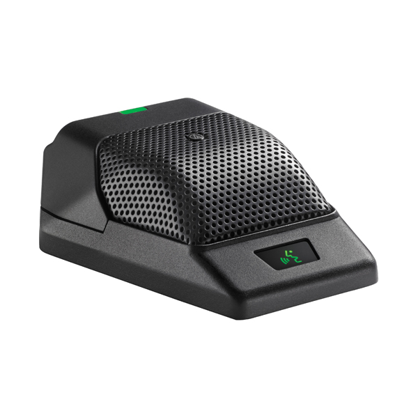 • Due LED rosso/verde posti sul davanti e sul retro indicano lo stato del microfono, il livello della batteria