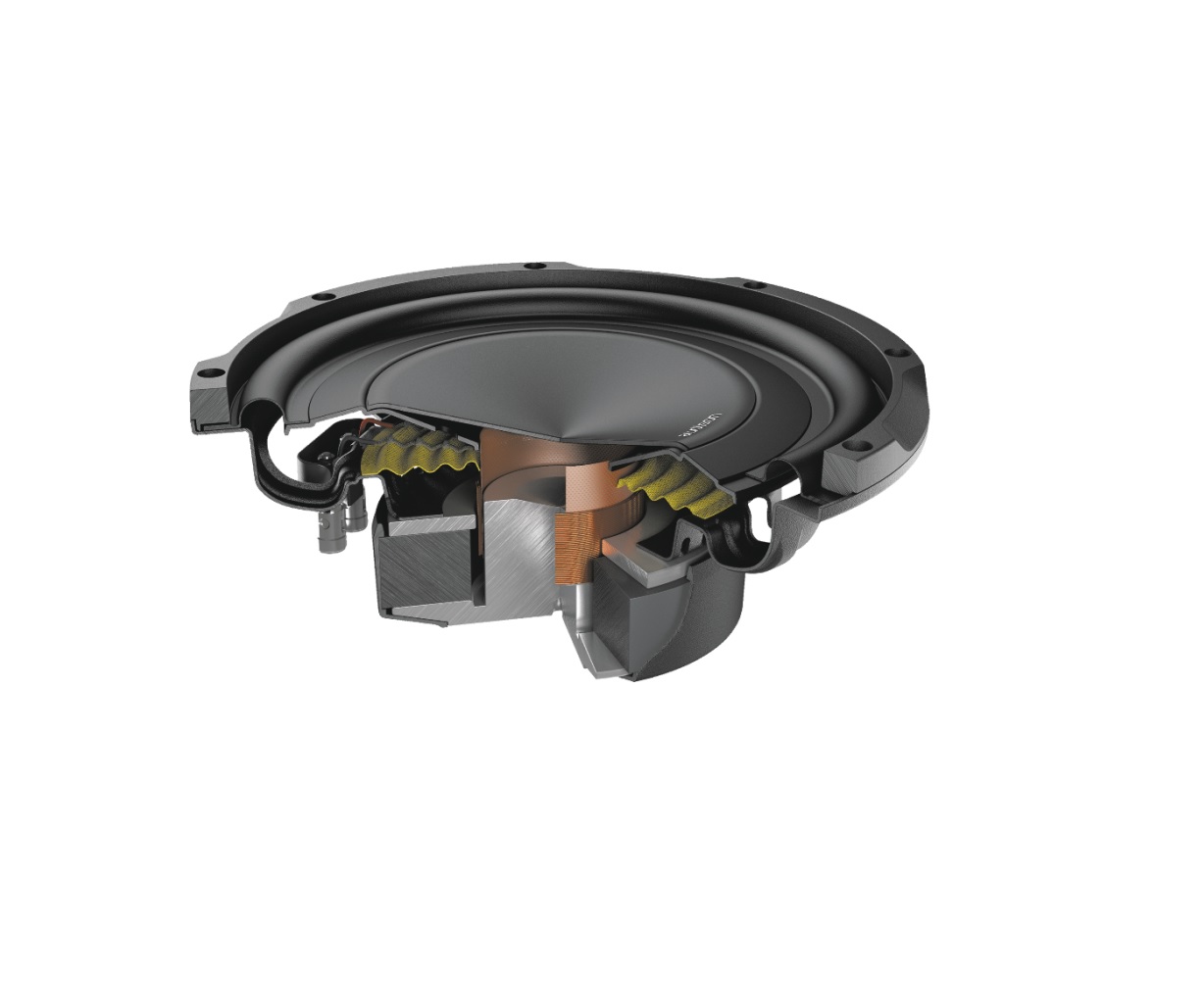 - Design esclusivo della geometria del cono, parapolvere e cestello per ottenere un’ampia escursione lineare (11 mm in una direzione), mantenendo al minimo la profondità necessaria per il montaggio.