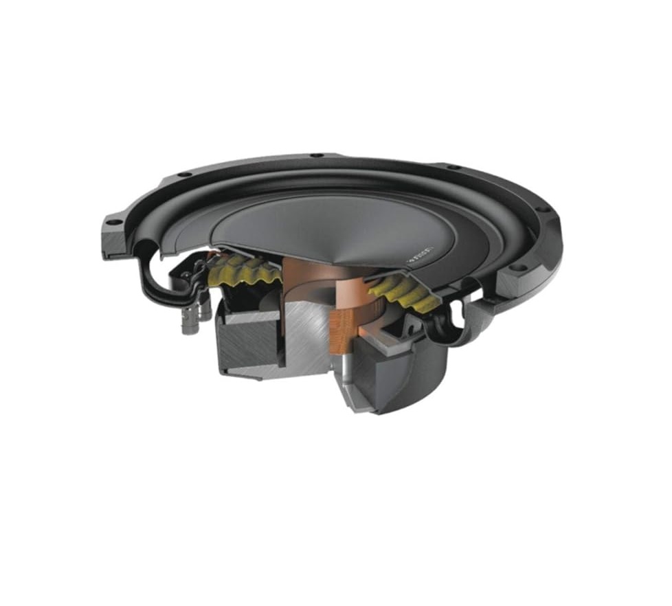 - Gruppo motore massiccio, ottimizzato con FEM (Finite Element Modeling) per un controllo perfetto in condizioni di alta potenza ed elevata escursione.