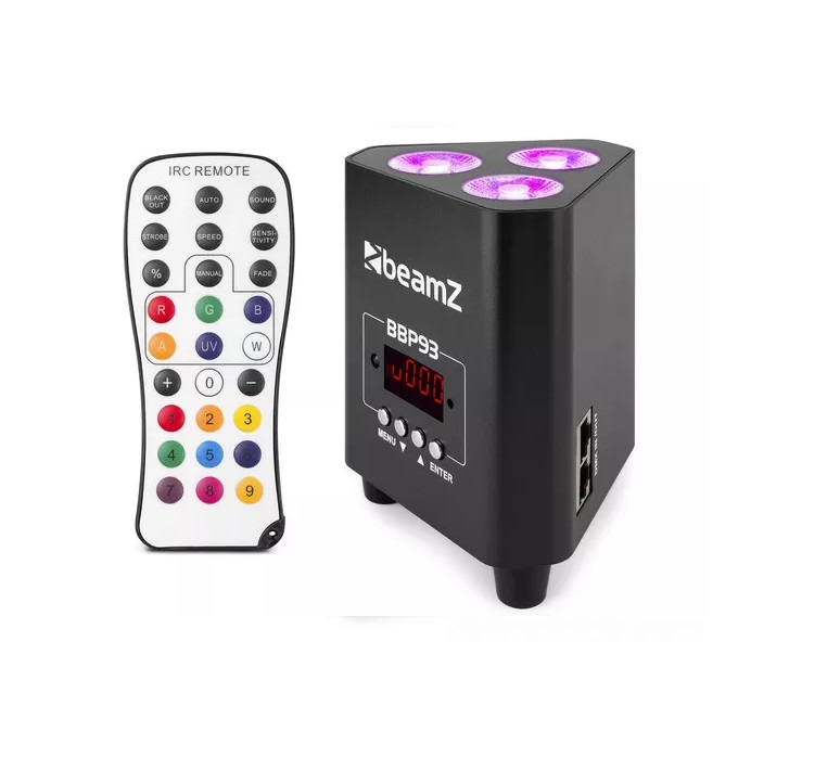 Il BBP93 è un Par compatto ideale per l’uso come uplighting. Il BBP93 è dotato di 3 LED RGBW super luminosi da 10W ed è dotato di una batteria integrata che durerà oltre 7 ore quando è completamente carica, a seconda dei colori e dell’intensità. Il BBP93 è l’apparecchio perfetto per DJ, band e società di produzione che desiderano migliorare i loro spettacoli.