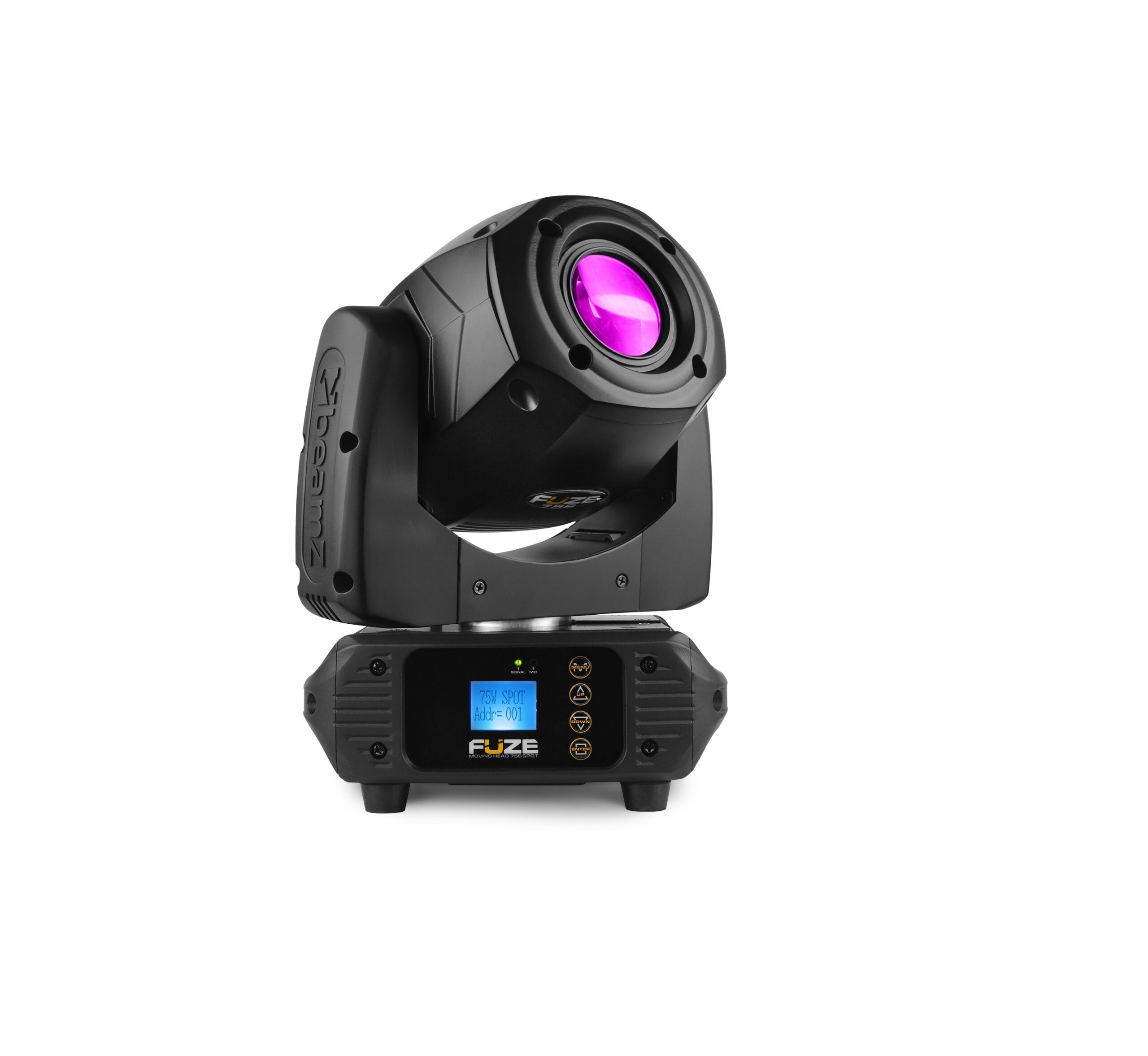BeamZ Fuze75S- La testa mobile LED Spot di Fuze75S è leggera e compatta con un potente LED da 75 W. Produce fasci nitidi e dai colori chiari che possono essere personalizzati con le ruote colore e gobo. Fuze75S è inoltre dotato di un prisma a 3 facce che divide il fascio per grandi effetti e per coprire aree più grandi. Funzionamento tramite DMX, modalità Auto con presets integrati, Sound Active Mode o collegate in modalità Master / Slave. Perfetto per lighting designer, DJ, band, club, bar e installazioni in cui il ridotto peso e ingombro sono fondamentali.