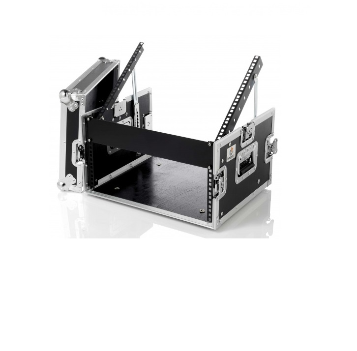 Coperchi con chiusure a farfalla a scomparsa. Robuste maniglie con molla di ritorno. Resistenti profili in alluminio anodizzato argento. Profilo rack anteriore e superiore con alzata regolabile. Colore nero