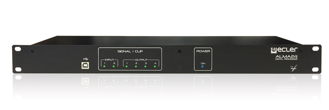 ALMA24 è un gestore di altoparlanti digitali che include 2 ingressi audio e 4 uscite audio, interfaccia USB e 2 porte di controllo remoto del volume (0-10VDC). ALMA24 è un processore autonomo 1RU.