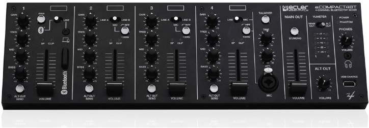Mixer da installazione da tavolo/rack 19″ dotati di: 4 ingressi MIC con filtro HP e Phantom Power 48V selezionabili, 6 ingressi LINE STEREO, ricevitore Bluetooth ed ingresso AUX mini-jack. Possiede inoltre un’uscita STEREO bilanciata (XLR), un’uscita SUB (XLR) con filtro LP, un’uscita ALT (RCA) ed uscita cuffie (mini-jack). Completano le dotazioni un controllo di tono a 3 bande, il talkover sull’ingresso CH4 ed una porta USB di ricarica. Alimentatore ed alette per il montaggio rack inclusi.
