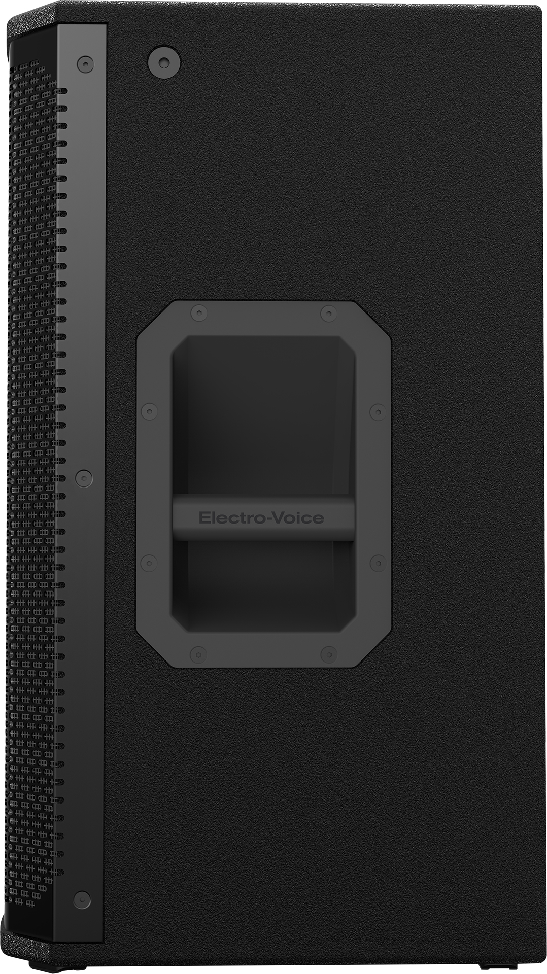 Sistema a 2 vie autoalimentato full range. Mobile asimmetrico di forma trapezoidale, realizzato in compensato da 15 mm, rivestito con EVCoat e rifinito in colore nero. 2 maniglie di trasporto in metallo, presa per treppiede e 8 punti di ancoraggio M10. Modulo amplificatore di classe D da 1.500 W, QuickSmartDSP con display LCD ed encoder associato, preset EQ per modalità di applicazione e posizione, EQ a 3 bande, 5 memorie di preset programmate dall’utente. 2 ingressi con connettori XLR-Jack¼’ Combo, 1 regolazione del volume complessivo dell’amplificatore e 1 uscita parallela con mix degli ingressi (XLR). LF: 1 altoparlante con cono da 12′ (EVS-12M). HF: 1 driver a diaframma in titanio da 1′ (DH-1M) caricato in una tromba a direttività costante con tecnologia Signal Synchronized Transducers (SST). Angolo di copertura: H 90° x V 60°. Risposta -10dB: 50Hz – 20kHz.SPL massimo: 132dB. Dimensioni (HxLxP): 607 x 375 x 356 mm. Peso: 18,8 kg