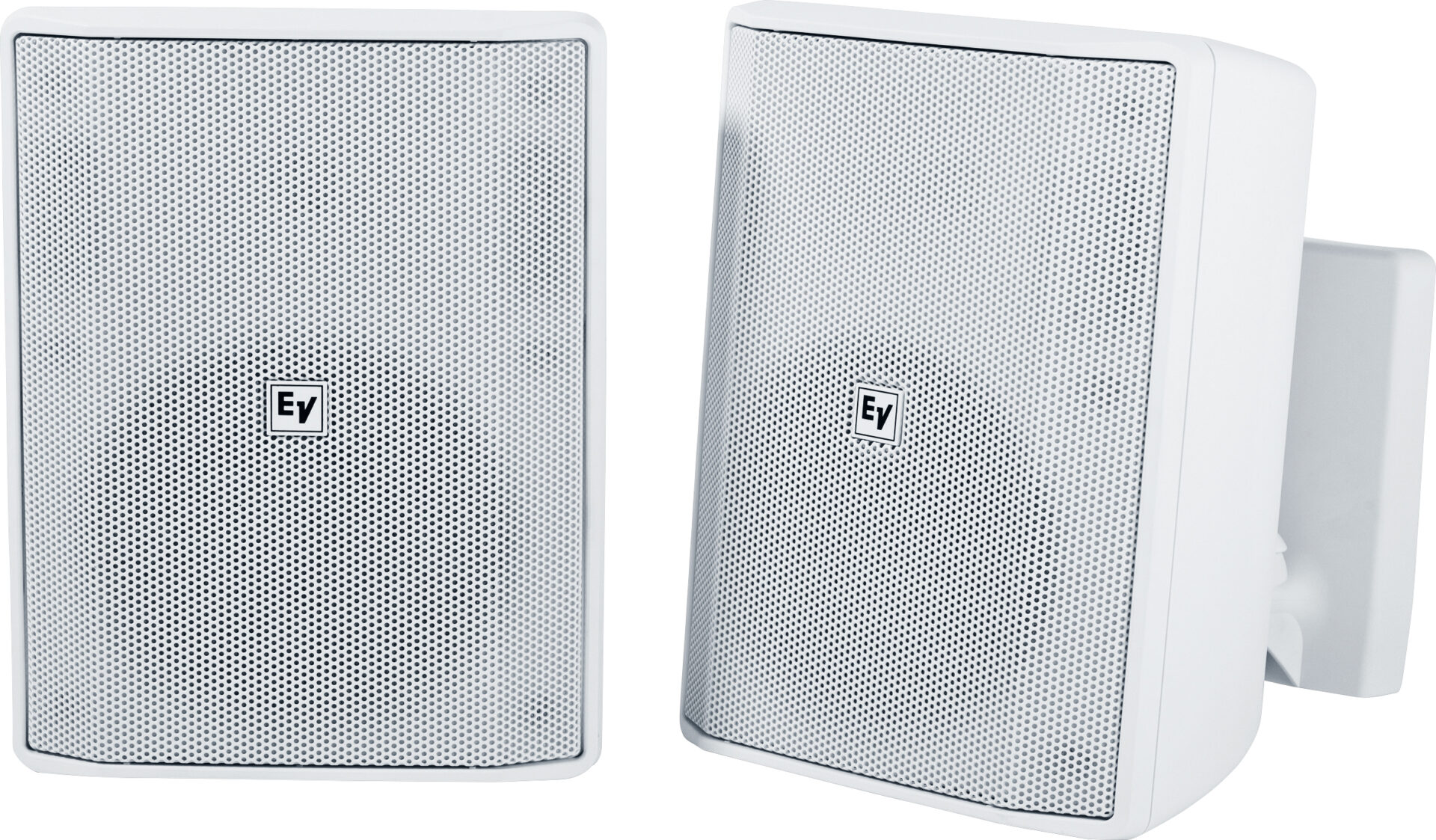 Sistema passivo a 2 vie ultracompatto a gamma completa. Custodia in ABS stampato a iniezione (verniciabile). Conforme alle norme IEC 60068-2-5 Radiazione solare, IEC 60068-2-11 Nebbia salina, IEC 60068-2-42 SO2, IEC 60068-2-60 Cloro e IEC 60529 IP54. Include una staffa. Incorpora un limitatore di sovraccarico passivo a piena larghezza di banda. LF: 1 altoparlante con cono in polipropilene tropicalizzato da 5,25′. HF: 1x tweeter da 0,75′. Angolo di copertura: H 90° x V 90°. Risposta -10dB: 60Hz – 20kHz.75W 8Ohm Sensibilità 90dB @ 1watt, 100 Hz 10 kHz@ 1 metro. Connettori: 1x Phoenix a 4 pin (euroblock). Dimensioni (HxLxP): 255 x 180 x 151 mm. Peso: 2,7 kg. Finitura di colore bianco. Prezzo al paio. Forniti in coppia