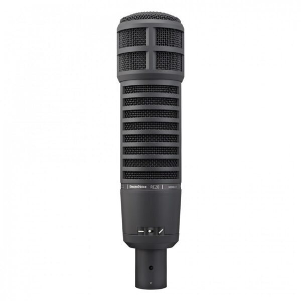 ELECTRO-VOICE RE20 Microfono dinamico a diaframma largo con diaframma D variabile. Carattere sonoro morbido, naturale e controllato. Variabile-D per un effetto di prossimità minimo. Cardiodo D non colorato a 180 gradi fuori asse. Risposta in frequenza adattata alla voce. Prestazioni di tipo condensatore da studio. Elemento dinamico a grande diaframma. La bobina Humbucking protegge dal ronzio di linea. Interruttore per la regolazione del tono dei medio-bassi. Elegante finitura in carbonio scuro a basso riflesso