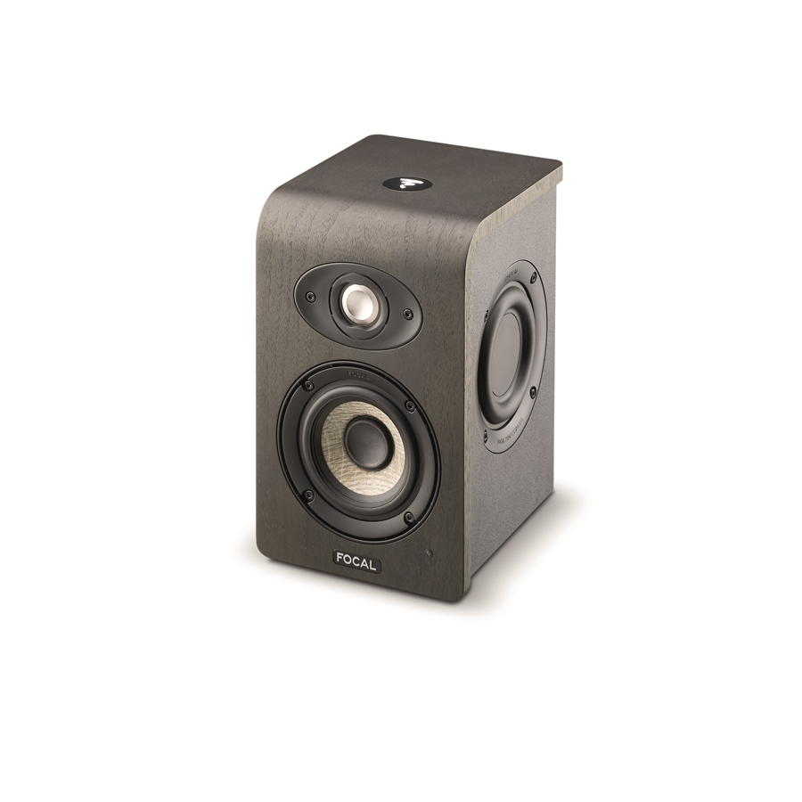 Focal Shape 40, monitor nearfield attivo; 25 + 25 watt classe ab; woofer da 4″ flax cone; tweeter: da 1″ alluminio-magnesio ‘M’ shaped; due radiatori passivi laterali da 4″; risposta in frequenza (+/-3 db): 60 Hz – 35 kHz; max spl peak@1m (musical signal): 102 db; impedenza ingressi: 10 kΩ controlli: filtro passa-alti, bassi, medi,alti; power switch; funzione automatica di standby; costruzione: mdf 12 mm; finiture: vinile, legno di noce e vernice nera; connettori: xlr bilanciato ed rca sbilanciato con sensitivity compensation; staffa per montaggio a parete ed a soffitto (viti ed accessori non forniti); dimensioni: 161 x 200 x 257 mm. Il tweeter a bassissima direttività consente una posizione di ascolto più flessibile (sweet spot più ampio).