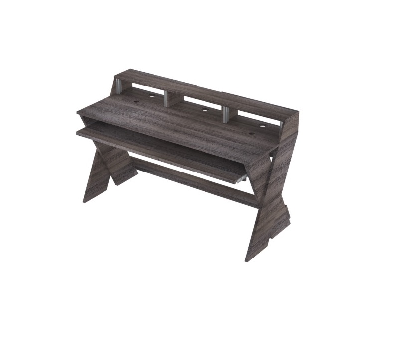 Console di lavoro professionale con un design ben organizzato, ideale per le workstation di produzione musicale, dotata di piano estraibile per master keyboard, 2 alloggiamenti da 3U rack 19″, spazio per CD/DVD, libri o altro, con foro passacavi, piano di appoggio dimensionato per accogliere tastiera, mouse, mixer, controller o altro, piano rialzato per uno o due monitor video e monitor audio, realizzazione in legno MDF da 20 mm, dimensioni 1550 x 932 x 650 mm, peso 39,7 kg, assemblaggio semplice e senza problemi, colore noce.