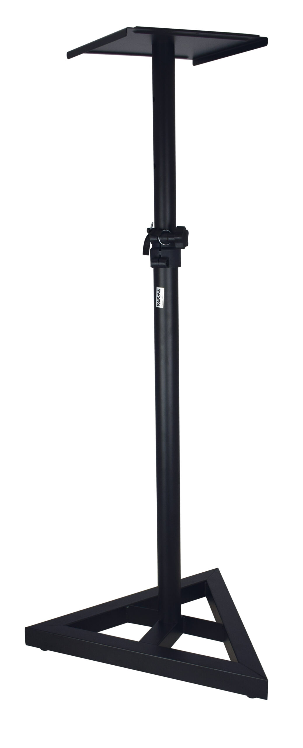 Supporto con piatto ideato per l’appoggio di diffusori monitor. Realizzato in metallo è in grado di sostenere un carico massimo di 25 Kg e di estendersi in altezza da 76 a 130 cm. La base di appoggio per il diffusore monitor è di 23 x 23 cm. Include gommini per appoggio a pavimento e picchetti per utilizzo su superfici morbide.