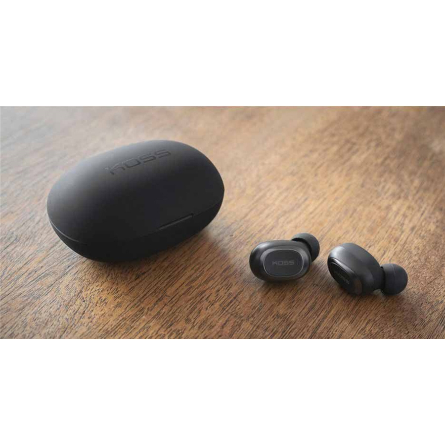 La parte posteriore di entrambi gli auricolari funge da superficie di contatto conduttiva per attivare un’intera gamma di funzioni; è possibile controllare con varie combinazioni : on/off, volume +/-, riproduzione/pausa, traccia avanti/indietro, risposta/riaggancio chiamata e controllo vocale della chiamata (a seconda del dispositivo in uso). Gli auricolari TWS250i sono caratterizzati da grande comfort d’uso una volta inseriti nell’orecchio con la giusta taglia (S, M, L) scompaiono letteralmente dalla percezione, la portata del segnale Bluetooth è fino a 10 mt. Il suono è quello di grande qualità con estesa risposta in frequenza e dinamica tipico di Koss.