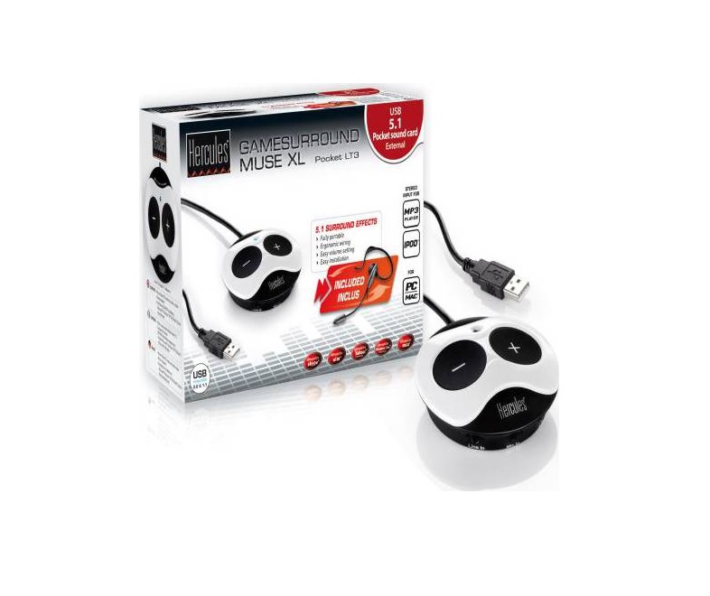 Scheda audio alimentata tramite bus USB: ultra-compatta e leggera, perfetta per ottenere un suono surround 5.1 guardando un DVD o giocando con il tuo computer portatile!