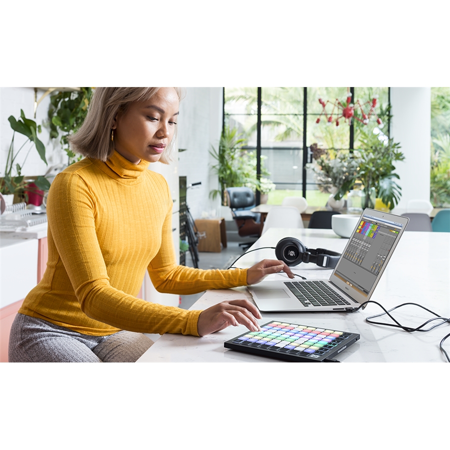 Launchpad mini MKIII è il più compatto MIDI controller USB a matrice di pad del catalogo Novation, ottimo per live performance e nella produzione, sia con iPad (app gratuita), sia con computer Mac o Pc. La griglia a 64 pad RGB consente di triggerare clip e controllare effetti. 3 mappature personalizzabili disponibili. Perfetta integrazione con Ableton Live e Live Loops in Logic Pro.