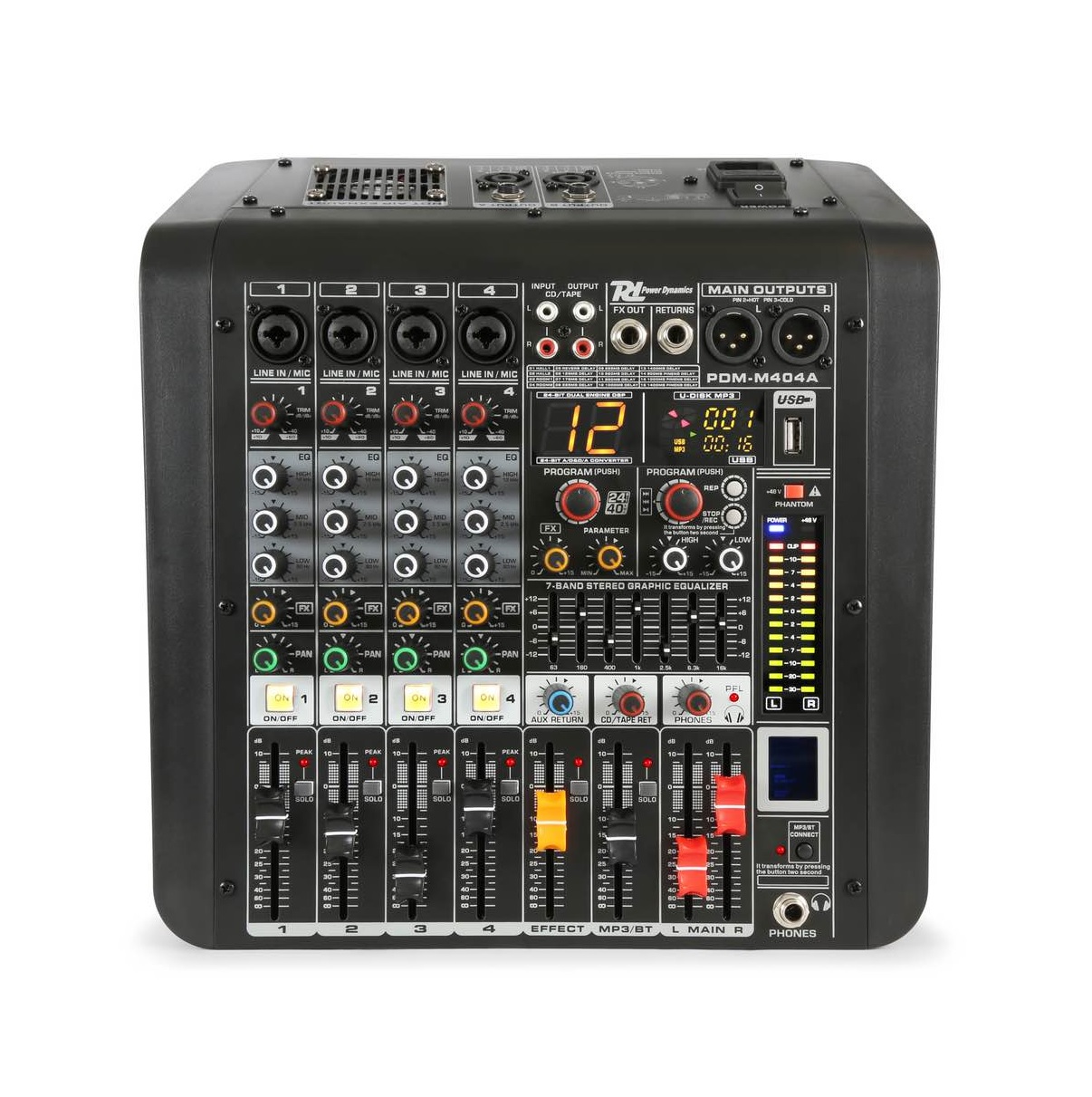 Mixer da tavolo dotato di amplificatore integrato e numerose funzionalità interessanti. Le funzionalità includono interruttori “mute” e “solo” su ogni canale, lettore USB integrato con display digitale e ricevitore BT per la riproduzione di musica sul mixer durante le pause. Ideale per configurazioni dal vivo e per piccoli gruppi musicali.