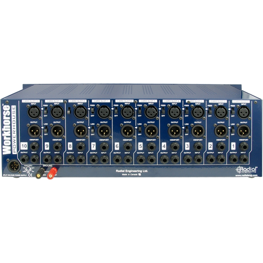 Il Workhorse – Powerhouse è un rack da 10 moduli formato Serie 500, dotato di alimentazione, e progettato per ospitare sia i moduli della Serie 500 più vecchi che quelli nuovi offrendo la massima densità possibile in un rack standard da 19 pollici.