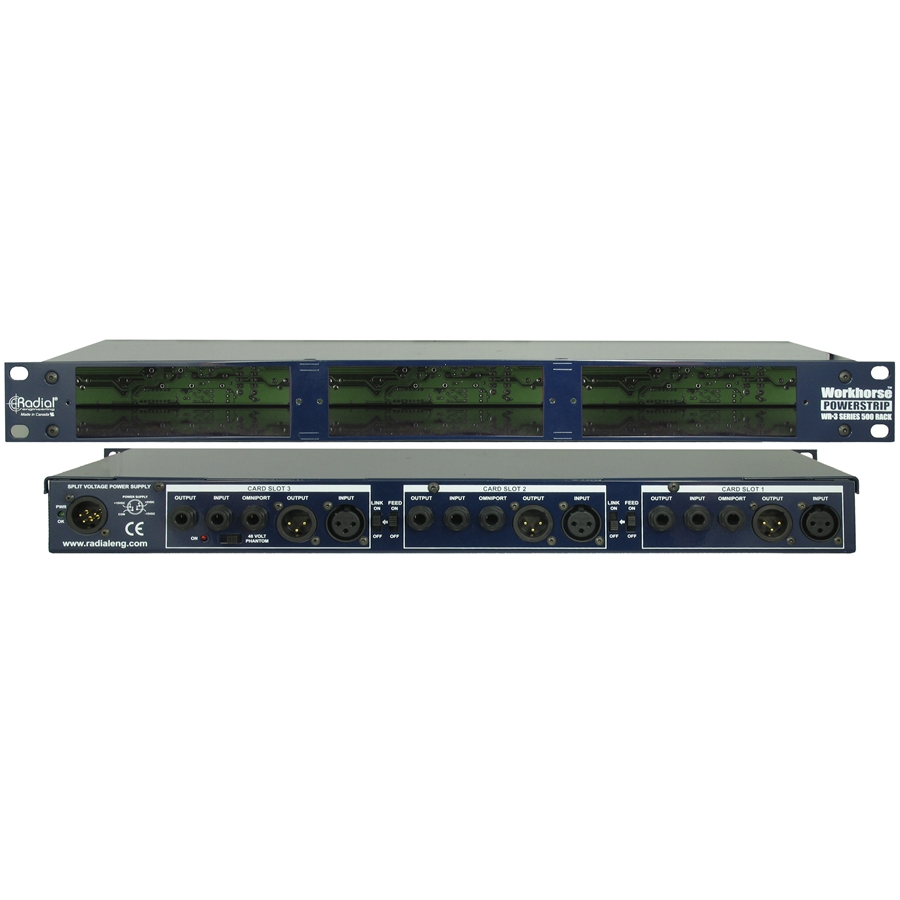 A differenza di altri rack alimentati da singola unità che si limitano ad ospitare solo 2 moduli,l’innovativo design a triplo modulo vi permette di creare un channel strip tradizionale, combinando un preamplificatore microfonico con un equalizzatore ed un controllo di dinamica usando un compressore-limiter, tutto all’interno dei confini di una singola unità rack da 19″. Con una così vasta gamma di scelta di moduli disponibili oggi, questo apre le porte alla creazione di percorsi di segnale unici, per rendere unica anche la vostra musica. Seguendo i criteri stabiliti dal Radial Workhorse, il PowerStrip è compatibile al 100% con i vecchi moduli API mentre è ottimizzato per la serie Radial di preamplificatori, processori e apparati per il routing in continua espansione. Il PowerStrip è costruito in acciaio 14 gauge ed è dotato di connettori EDAC a 15 pin a doppio contatto d’oro per ottenere un ottimo trasferimento del segnale. Per massimizzare l’headroom, l’alimentatore esterno offre 500mA di corrente per i moduli che esigono alto voltaggio, oltre a fornire separatamente ulteriori 10mA di corrente per l’alimentazione phantom a 48V per i preamplificatori microfonici. Il pannello posteriore offre connettori XLR standard per ogni slot oltre a connettori TRS ¼” per eseguire “cross patching” o processamento parallelo. Invece di dover collegare i vari moduli l’uno all’altro usando un cavo, il PowerStrip incorpora una funzione innovativa tramite uno switch chiamato “feed” che collega istantaneamente il segnale al modulo adiacente. Questo rende facile costruire velocemente catene di segnale ed elimina il bisogno di ulteriori cavi. A differenza dei vecchi rack che richiedevano delle saldature in caso di utilizzo dei moduli in stereo, il PowerStrip è dotato di una funzione stereo link che si occupa di questo compito semplicemente tramite l’inserimento di uno switch. Il PowerStrip è dotato anche di connessione Omniport per ogni slot. Questo jack TRS permette alla casa produttrice di implementare una particolare funzione come per esempio la chiave per un gate. Il PowerStrip rende facile assemblare una varietà di moduli per creare il miglior channel strip per le vostre esigenze. Il suo design compatto da una unità rack è ideale sia in studio che in tour. Punti di Forza: