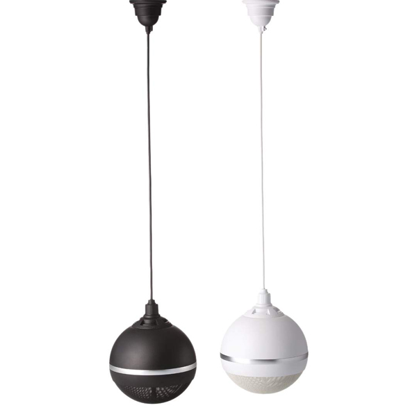 AMC SL 20MB è un diffusore sferico da installare sospeso da soffitto, di aspetto moderno, a diffusione emisferica per le applicazioni che necessitano di distribuzione sonora uniforme.