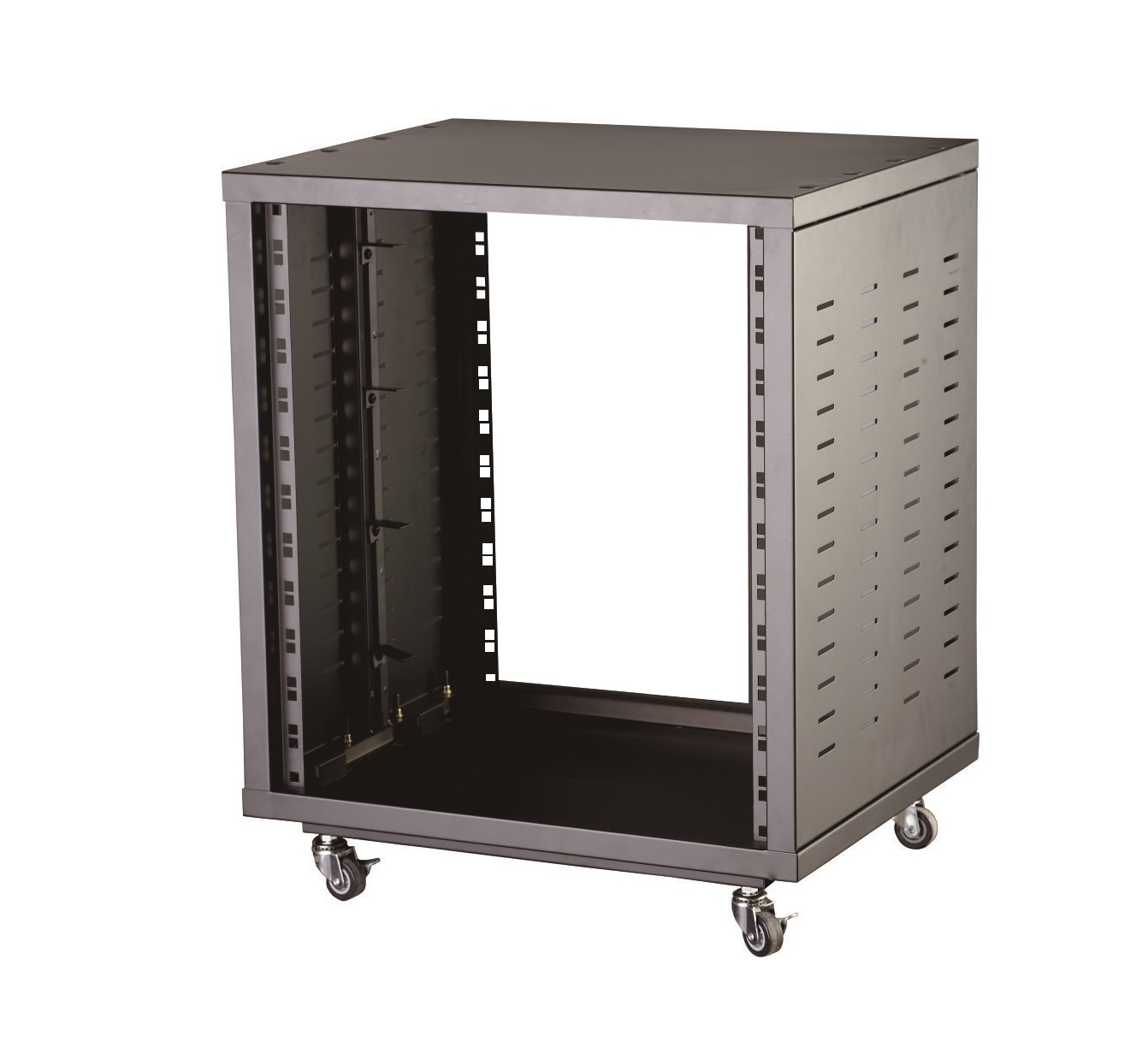I supporti Rack serie SRACK-100 sono costruiti in acciaio e permettono di alloggiare varie apparecchiature in maniera semplice e sicura. Disponibili in diverse misure, sono dotati di 4 ruote con blocco. Ideali per installazioni fisse, studi di registrazione e palchi.