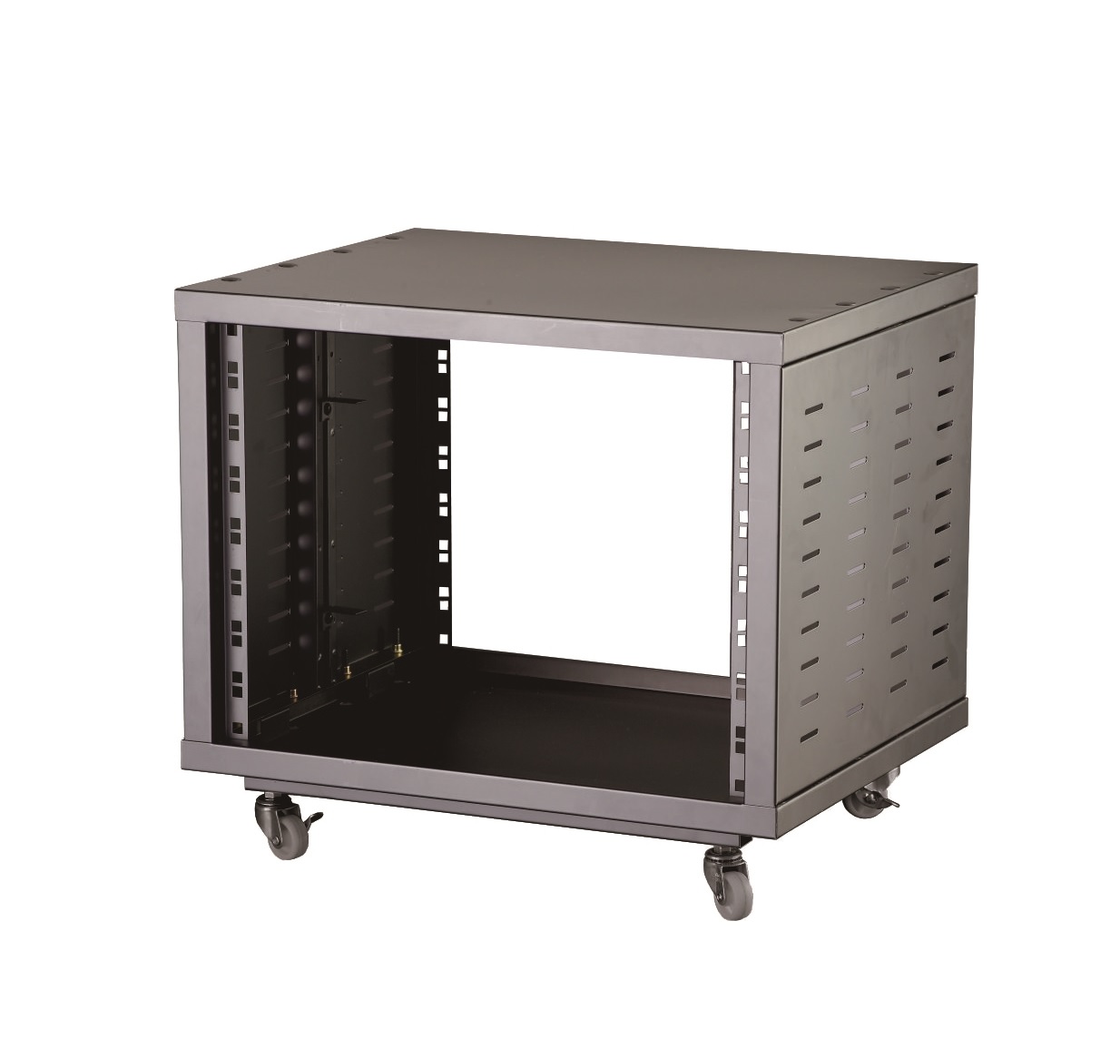 I supporti Rack serie SRACK-100 sono costruiti in acciaio e permettono di alloggiare varie apparecchiature in maniera semplice e sicura. Disponibili in diverse misure, sono dotati di 4 ruote con blocco. Ideali per installazioni fisse, studi di registrazione e palchi.