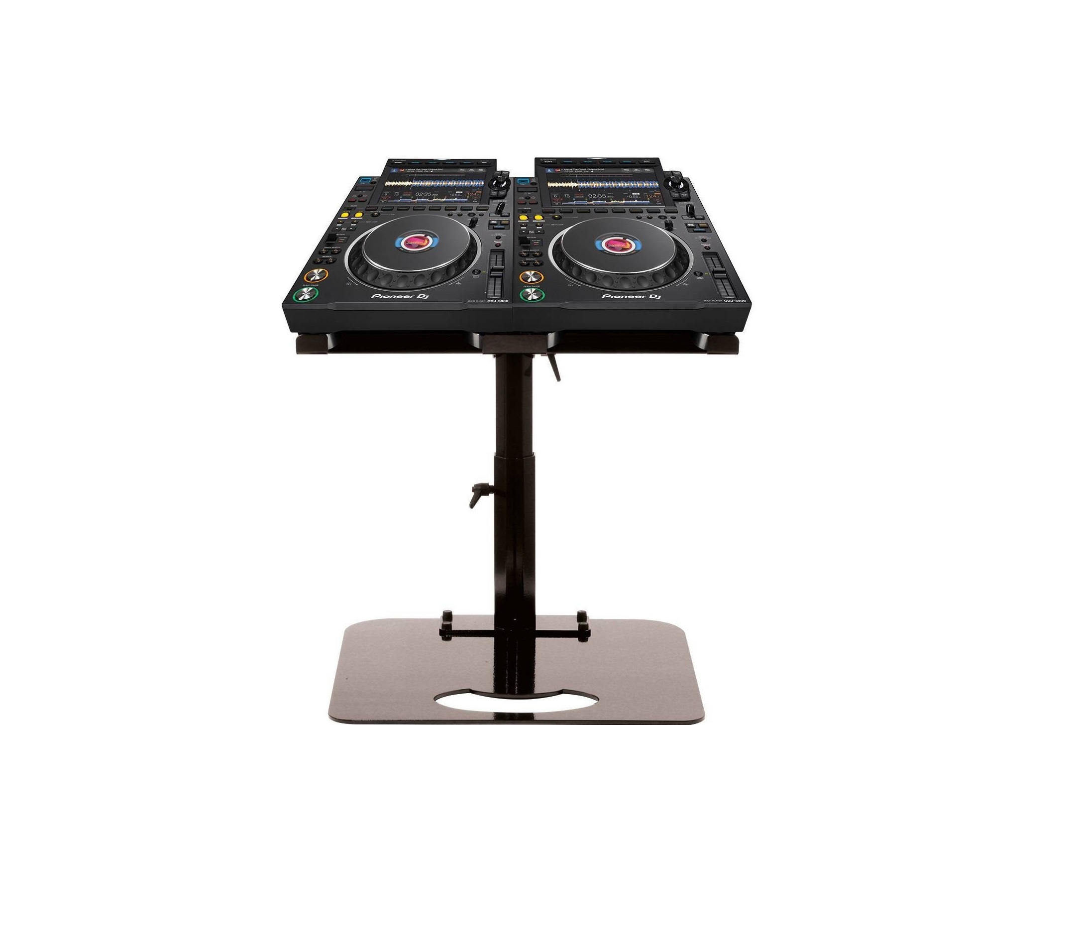Il supporto Zomo P-3000/2 è stato progettato per 2 media player Pioneer CDJ-3000. Attraverso l’uso del supporto l’utente può risparmiare spazio posizionando i lettori direttamente sopra al mixer o ai giradischi. Possono essere posizionati fino a 2 media player. Molto solida e stabile nel tempo è consigliata anche per un uso prolungato nel tempo e in condizioni di frequente mobilità. Per essere utile all’artista, Pro Stand P-3000/2 può essere regolato in altezza e inclinazione, ma anche in senso orizzontale destra-sinistra. Se necessario è possibile variare la posizione rapidamente e semplicemente attraverso efficaci meccanismi di sgancio e aggancio. Inoltre, i piano di appoggio per ogni media player sono intercambiabili rendendo cosi il supporto adattabile in caso di cambio futuro del player con uno diverso. Pro Stand P-3000/2 può essere installato a qualsiasi piano orizzontale attraverso 4 viti di sostegno oppure appoggiato su qualsiasi piano attraverso la base (opzionale). L’uso della base opzionale è molto consigliato per l’uso mobile.