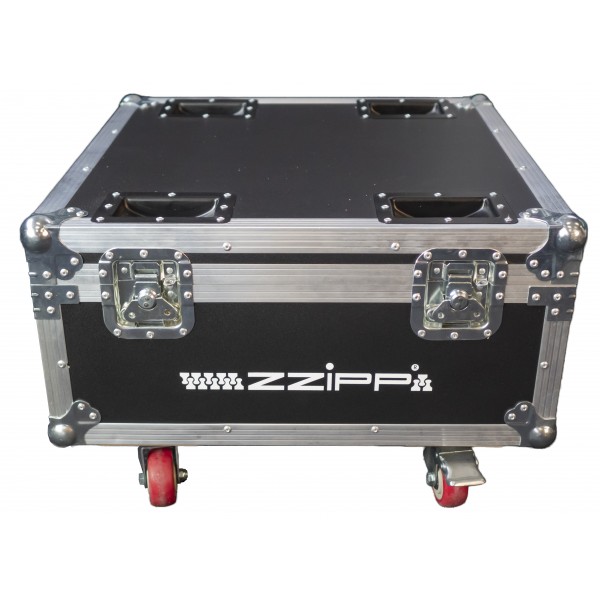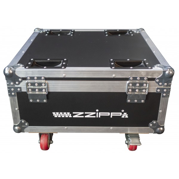 Robusto flight case montato su ruote per il trasporto, lo stoccaggio e la ricarica di 6 fari ZZEN0912BWP.