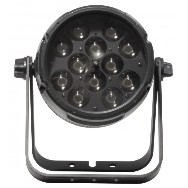 Par LED RGBW con 12 LED da 30W IP65 con zoom da 10° a 50°.