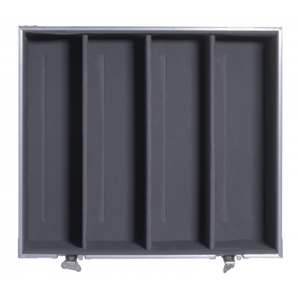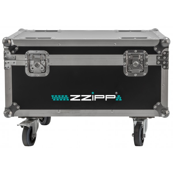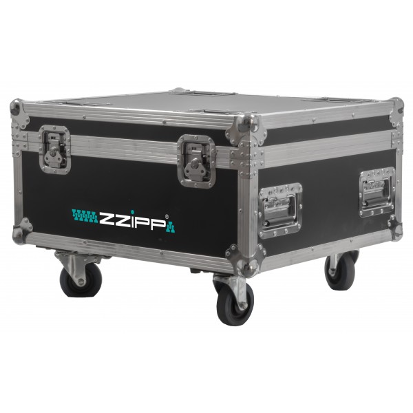 Robusto flightcase in multistrato di betulla rivestito con copertura antigraffio nera opaca. Design esclusivo e funzionale, ospita 4 macchine ZZEN400STR. 4 maniglie per il trasporto (2 per lato), 4 ruote sterzanti (2 con freno), 4 insenature sulla parte superiore per impilare più unità una sull’altra.